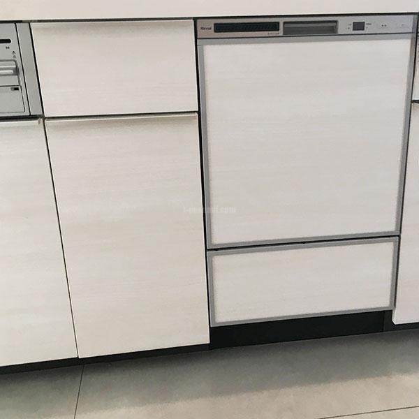 千葉市で、LIXILシステムキッチンにリンナイRSW-F403C-SVを新規設置しました。RSW-F403C-SVは、大容量フロントオープン食洗機です。上下2段式で、たくさんの食器を一度に洗えます。また、銀イオンカートリッジやからっとキープ、バイタル除菌洗浄などの機能も搭載。こちらの工事では、既存の引き出しを撤去し、食洗機と300mm幅引き出しを設置しました。