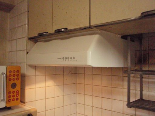 三菱電機社製のレンジフードへの交換工事です。フィルター周りが撥油塗装でお手入れが簡単になっています。