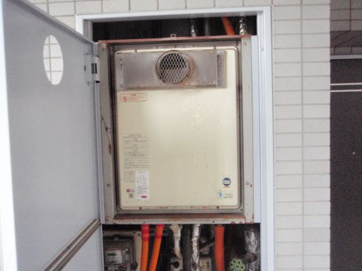 ガスふろ給湯器の交換工事です。今回の工事は、PS扉内設置(リンナイ RUF-A2000AT)タイプです。