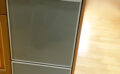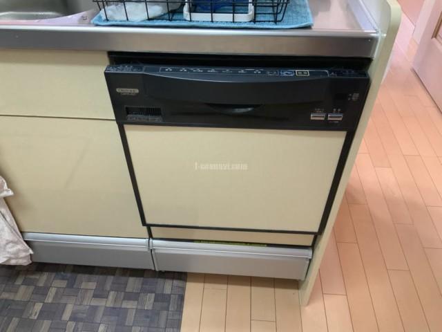 端部で天板を支えているキャビネットを一度撤去して補強を入れ設置する工事です。