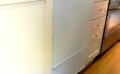 こちらの工事では、750mm幅の引き出しを撤去して、キャビネット分割工事をして、300mm幅引き出しキャビネットと、食洗機を設置しました。また、電源分岐、専用給排水工事も行っています。