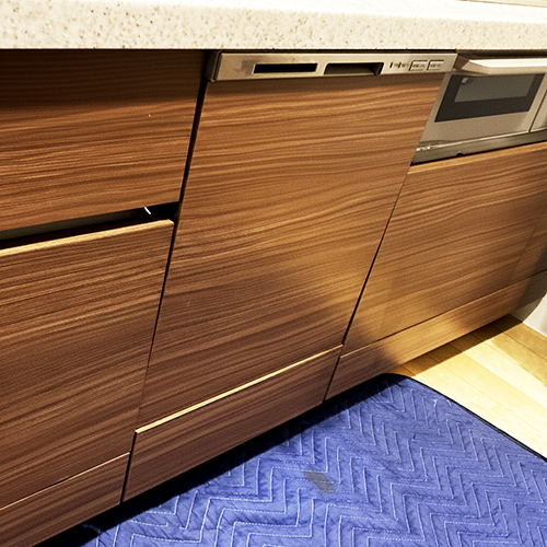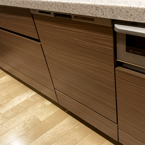 千葉県流山市の「ジオ流山おおたかの森」にお住まいのお客様より、パナソニックビルトイン食洗機NP-P45MD2WからNP-45MD9Wへの交換工事をご依頼いただきました。既存の面材をそのまま生かし、キッチンの雰囲気を損なわずすっきりと仕上げています。