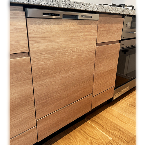 東京都千代田区のマンションにて、パナソニックNP-45MD7WからMiele「G 7714 C SCi AutoDos」への交換工事を行いました。既存の450mm食洗機と300mm引き出しを撤去し、600mm幅の本体と150mmの新規引き出しを設置。海外製モデルに必要な電源切り替え工事も、安心してご依頼いただけるよう丁寧に対応しています。