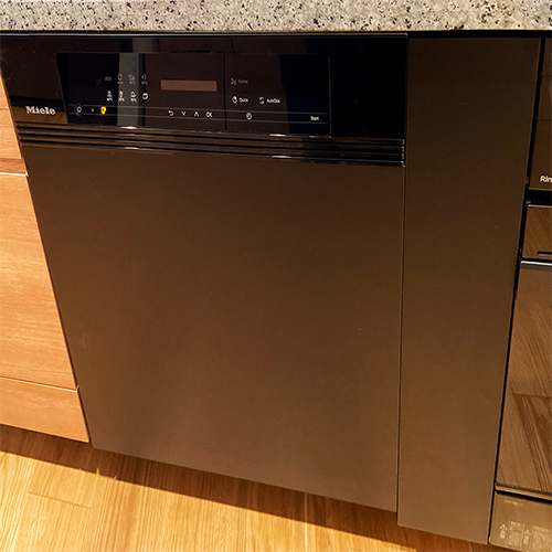 G 7714 C SCi AutoDosは、洗剤自動投入「AutoDos」とPowerDiskで毎日の負担を軽くしてくれる人気機種です。広い庫内や可動式バスケットで調理器具もまとめて洗え、静音性や乾燥性能の高さも魅力。引き出しの色味も整い、キッチン全体がすっきりとした印象になりました。海外製食洗機をご検討の方も、ぜひ弊社にご相談ください。