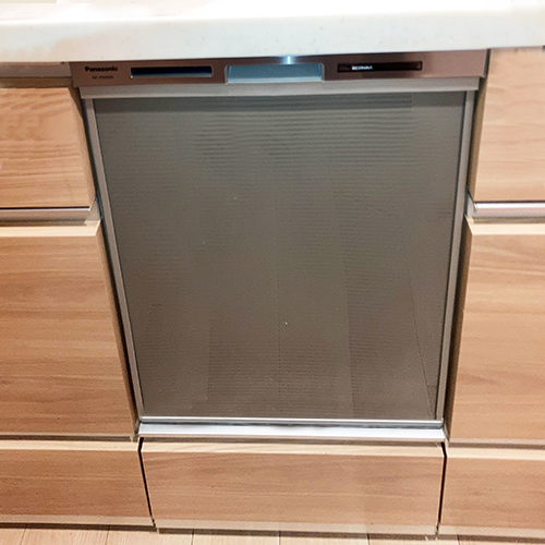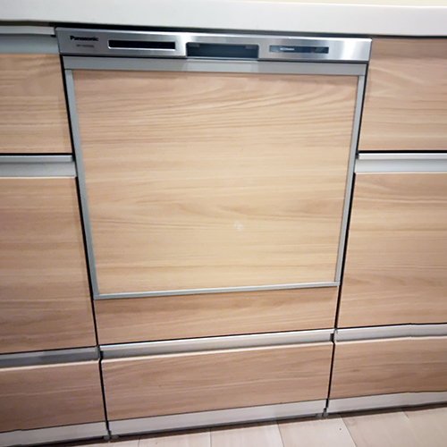 神奈川県川崎市、ブラウドシティ新川崎にお住まいのお客様宅にて、パナソニック製ビルトイン食洗機NP-45MS6SからNP-45MD9Sへの交換工事を行いました。今回はミドルタイプからディープタイプへの変更となり、既存キャビネットを加工して設置しています。