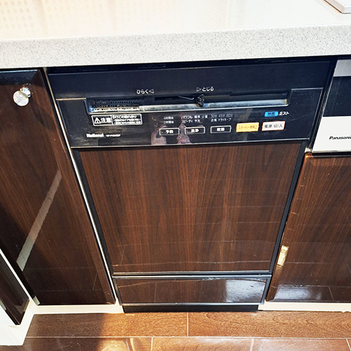 横浜市金沢区レイディアントシティ横濱にて、NP-P45VD2PからNP-45MD9Sへの交換工事を行いました。事前に機種名をご提示いただいていたため、お送りいただいた写真と寸法を確認し、問題なく設置できることをお伝えしました。特注パネルは当日ご用意した見本帳からお選びいただき、後日ご自宅へ直送し、お客様にて取り付けていただきました。NP-45MD9Sは約6人分に対応するディープタイプで、お鍋も入れやすい大容量モデルです。AIエコナビやストリーム除菌洗浄、ムービングラックプラスなど、使い勝手と清潔さに配慮した機能も備わっています。食洗機交換のご相談も承りました。