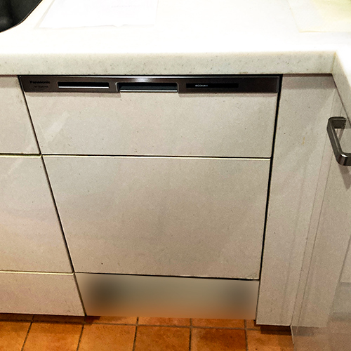 今回の工事では、既存の面材をそのまま転用し、新しい食洗機へ取り付けました。キッチン全体のデザインを変えることなく、機能面を新しくできる交換工事となりました。