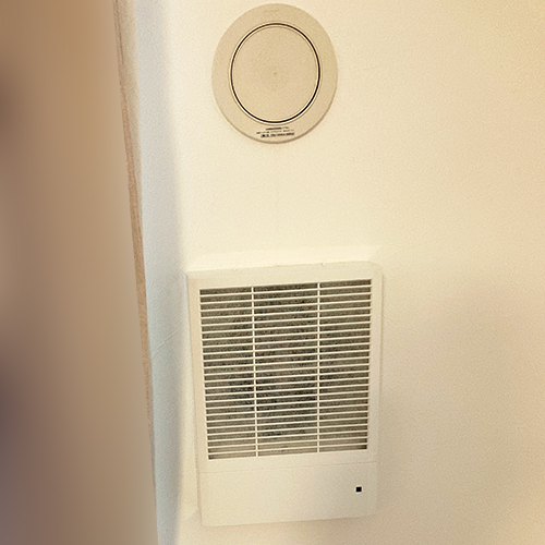 メルコエアテック製電動給気シャッター「AT-150QEF2-HC」から、三菱電機製電動給気シャッター「P-18QDLF6」への交換工事を行いました。