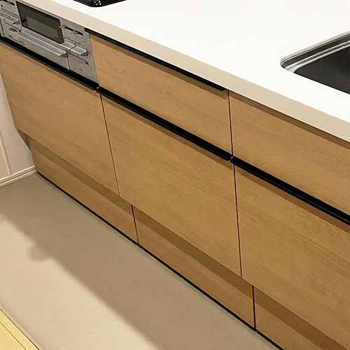 本体を後付けしています。今回の工事では、電源の分岐工事および食洗機専用の給排水工事もあわせて行いました。