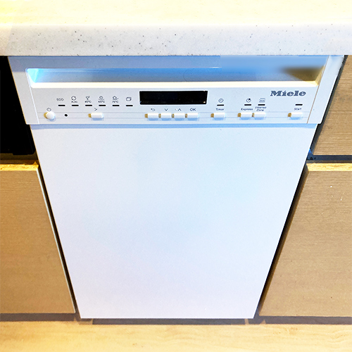 東京都練馬区のマンションにお住まいのお客様宅にて、パナソニック製ビルトイン食洗機「NP-45MD6S」から、Miele(ミーレ)製食洗機「G 5844 SCu」への交換工事を行いました。国産食洗機から海外製フロントオープン食洗機への交換となり、本体入れ替えにあわせて電源を200V仕様へ変更しています。
