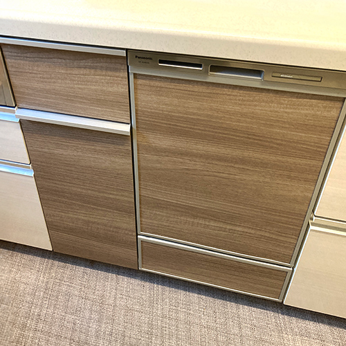 埼玉県新座市にお住まいのお客様宅にて、ファーストプラス製システムキッチンへビルトイン食洗機を新規設置しました。設置機種はパナソニック製NP-45MD9Sです。