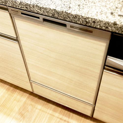 東京都江東区のスカイズタワー&ガーデンにお住まいのお客様宅にて、ファーストプラスシステムキッチンへパナソニック製ビルトイン食洗機NP-45MD9Sを新規で導入しました。