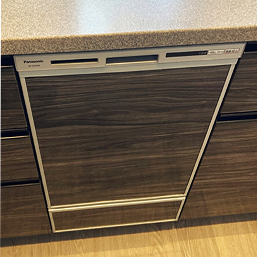 東京都八王子市のエステムコート八王子高尾にお住まいのお客様宅にて、システムキッチンへパナソニック製ビルトイン食洗機NP-45VD9Sの新規設置工事を行いました。お客様のご要望により特注面材パネルを設置し、キッチンの色味に合わせました。NP-45VD9Sは3Dプラネットアーム洗浄により庫内全体へ水流が行き渡り、上段の汚れまで洗浄可能です。またディープタイプの大容量設計で、フライパンなどの調理器具や複数人分の食器も収納可能です。ビルトイン食洗機の新規設置や交換をご検討の際は、お問い合わせフォームよりお気軽にご相談ください。