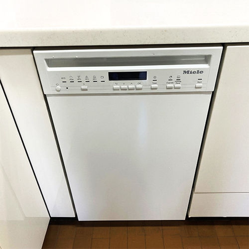 東京都武蔵野市にお住まいのお客様宅にて、ホシザキ製のビルトイン食洗機NP-P45X1P1AAからミーレG 5644 SCU SLへの交換工事を行いました。ミドルタイプからディープタイプへの変更のため、既存の下部収納を撤去し本体を設置しています。あわせて電源の切り替えおよび専用の給排水工事も行いました。G 5644 SCU SLはQuickPowerWashにより短時間でしっかり洗浄でき、AutoOpen乾燥により運転後にドアが自動で開き、効率よく乾燥します。ビルトイン食洗機の交換をご検討の際は、お問い合わせフォームよりお気軽にご相談ください。