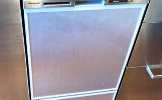 埼玉県吉川市にて、パナソニック製ビルトイン食洗機NP-45MD6SからNP-45MD9Sへ交換。後継機種のため約1時間で完了し、既存パネルを転用して設置しました。