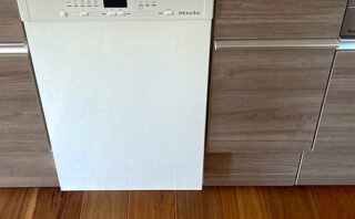 千葉県柏市にて、LIXIL製システムキッチンへMieleビルトイン食洗機G 5434 SCU SL Active(BW)を新規設置。引き出し撤去後、電源新設や給排水工事まで対応した施工事例です。